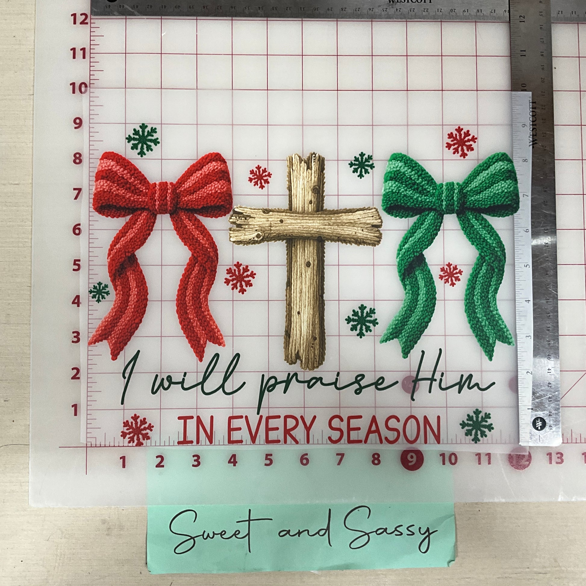 I WILL PRAISE HIM in every season red green bow cross DTF Transfer Design