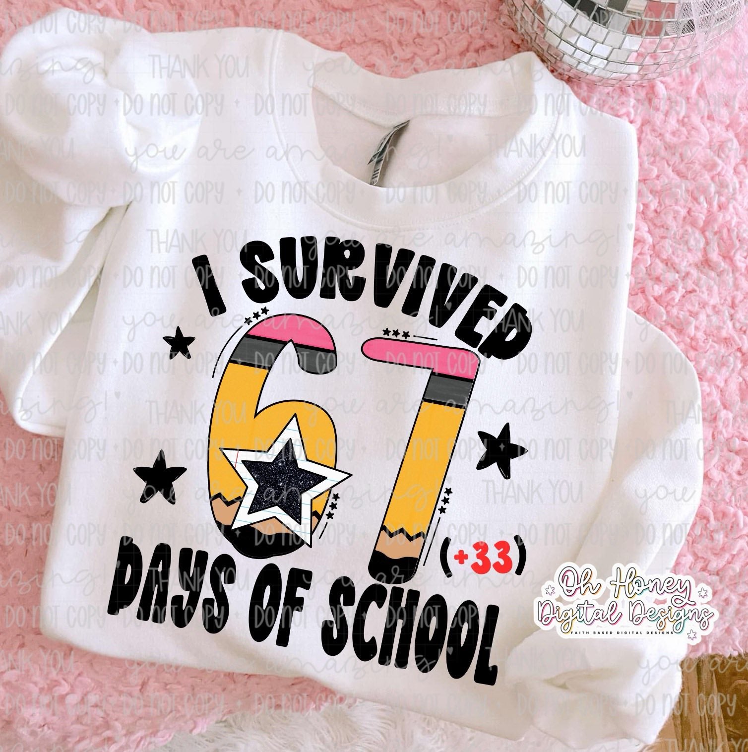 I survived 67 + 33 days of school checkers or glitter DTF Transfers Designs
