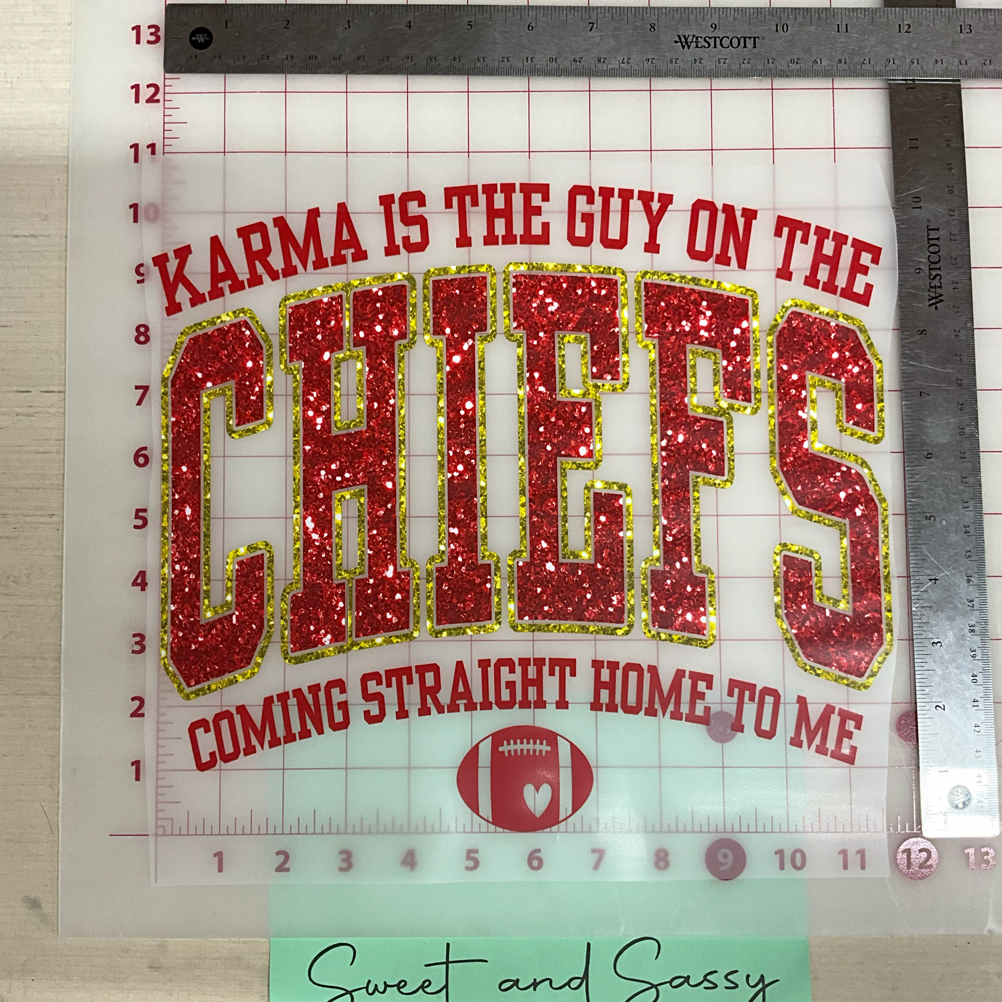 Karma is the guy on the Chiefs sequins DTF Transfer Design