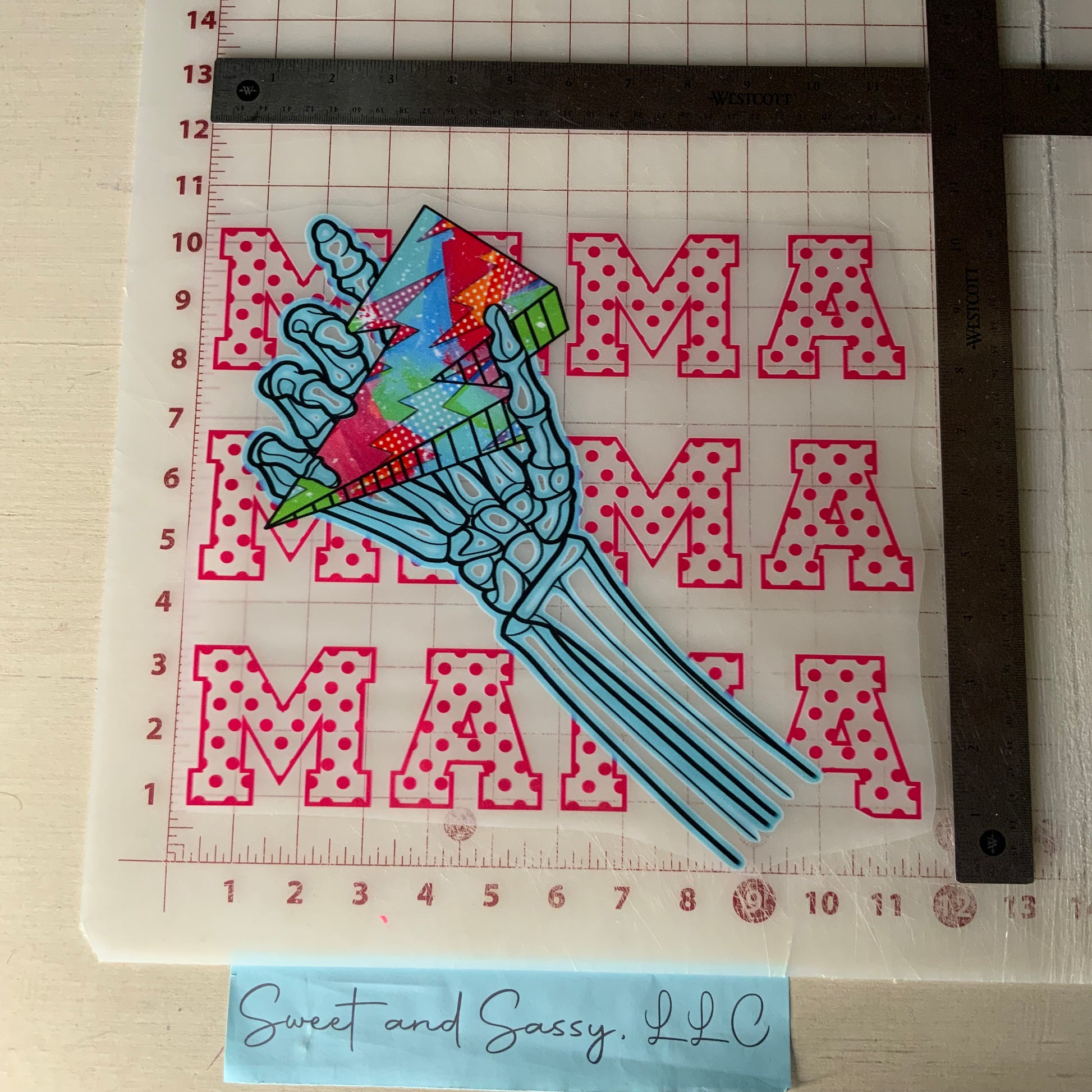 MAMA Neon Skeleton Lightening Bolt DTF Transfer Design